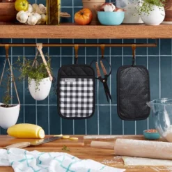 KitchenAid Gingham Pot Holder 2-Pack Set, Matte Black, 7″x10″