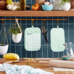KitchenAid Gingham Pot Holder 2-Pack Set, Charcoal Grey, 7″x10″