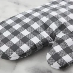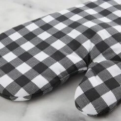 KitchenAid Gingham Oven Mitt 2-Pack Set, Matte Black, 7″x13″