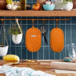 KitchenAid Asteroid Oval Pot Holder 2-Pack Set, Honey Orange, 6.5″x10″