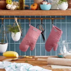 KITCHENAID Asteroid Oven Mitt 2-Pack Set, Dried Rose, 7″x12.5″