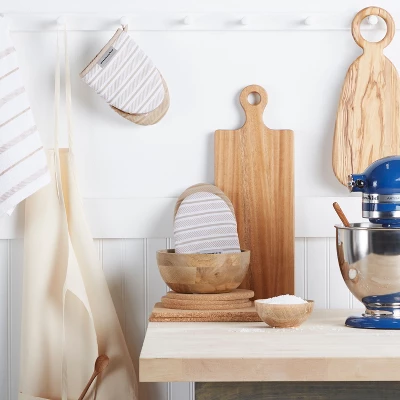 Safely handle your hot pots and pans with the KitchenAid Albany 2-Piece Mini Oven Mitt Set in Beet. Each mitt measures 5.5 inches wide by 8 inches long for easy on-and-off use while handling hot dishes. The durable, cotton fabric on the outside with polyester lining offers comfort and insulation. Clear, printed silicone on the mitts is heat resistant and ensures a more secure grip. A convenient hanging loop allows you to easily display or store these machine-washable mitts when not in use.
