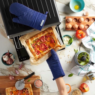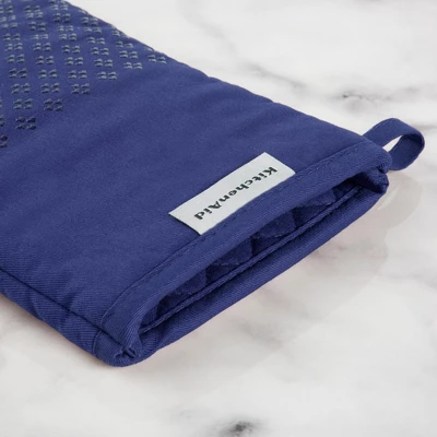 Shield your hands from the heat with the KitchenAid Asteroid Oven Mitt 2-Pack in Beet. These heat-resistant oven mitts help protect your hands while handling hot pots, pans, and dishes. The heavy-duty, 100 percent cotton fabric on the outside with cotton lining offers comfort, flexibility, and insulation. Textured, silicone print grips are heat resistant and ensure a more secure grip. They are machine washable for easy care.