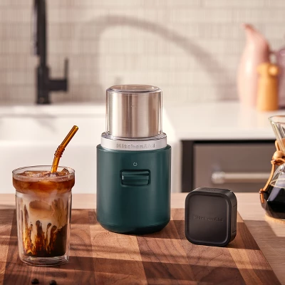 The power to make. The power to move. Create anywhere using the KitchenAid Go™ Cordless Blade Coffee Grinder in Shaded Palm, made by KitchenAid in partnership with Hearth & Hand™ with Magnolia. Powered by a rechargeable 12v MAX removable battery, the new cordless blade coffee grinder delivers 6 minutes of continuous run time* and performance, so you can cook wherever, whatever, and however you choose. *Maximum initial battery voltage (measured without a workload) is 12 volts. Nominal voltage is 10.8. Actual run time will vary based on recipe and/or attachments used. Battery life impacted by factors such as battery age and use.