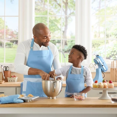 Bring style and practicality to the kitchen with the KitchenAid Gourmet Series Gridlines Big Chef Apron. Made from 100% Cotton, this adult-size apron features a modern color-block and windowpane grid design, perfect for cooking, baking, and entertaining. Measuring 32″x28″, it offers a customizable fit with adjustable straps, and its water and stain-resistant fabric ensures easy cleaning after messy tasks. Two roomy front pockets keep utensils, recipe cards, or essentials close at hand. Pair with the matching Gridlines “Little Chef” kid’s apron (sold separately) for fun, shared moments in the kitchen. Complete your culinary space with coordinated KitchenAid kitchen linens and tools.
