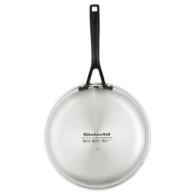 Build layers of flavor with the KitchenAid 5-Ply Clad Stainless Steel Induction Frying Pan Set designed for precision cooking with exceptional base-to-rim heat conduction. This two-piece set includes an 8.25-inch frying pan and A 10-inch frying pan that are crafted from 5-layers of heat conductive metal throughout and are built to fuel endless possibilities in the kitchen while providing superior heat retention. Unique black stainless steel handles are dual-riveted and provide a sleek table top presentation. Sealed rims prevent corrosion, allowing for the skillets to be truly dishwasher safe for easy cleanup, even after crafting signature pan seared salmon filets or honey garlic chicken thighs. Broiler and oven safe to 500°F for versatility, freedom, and creative cooking.