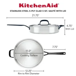 KitchenAid 5qt 5-Ply Clad Stainless Steel Induction Saute Pan With Lid: Dishwasher-Safe, Silver